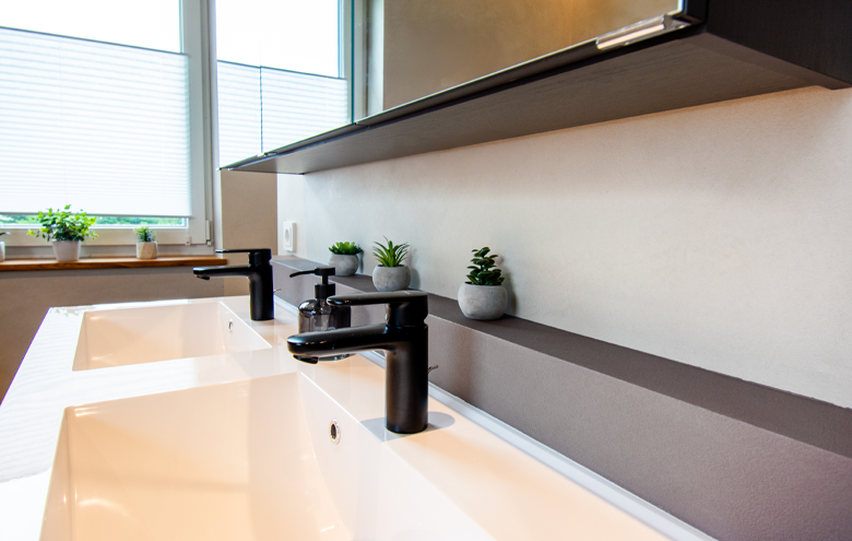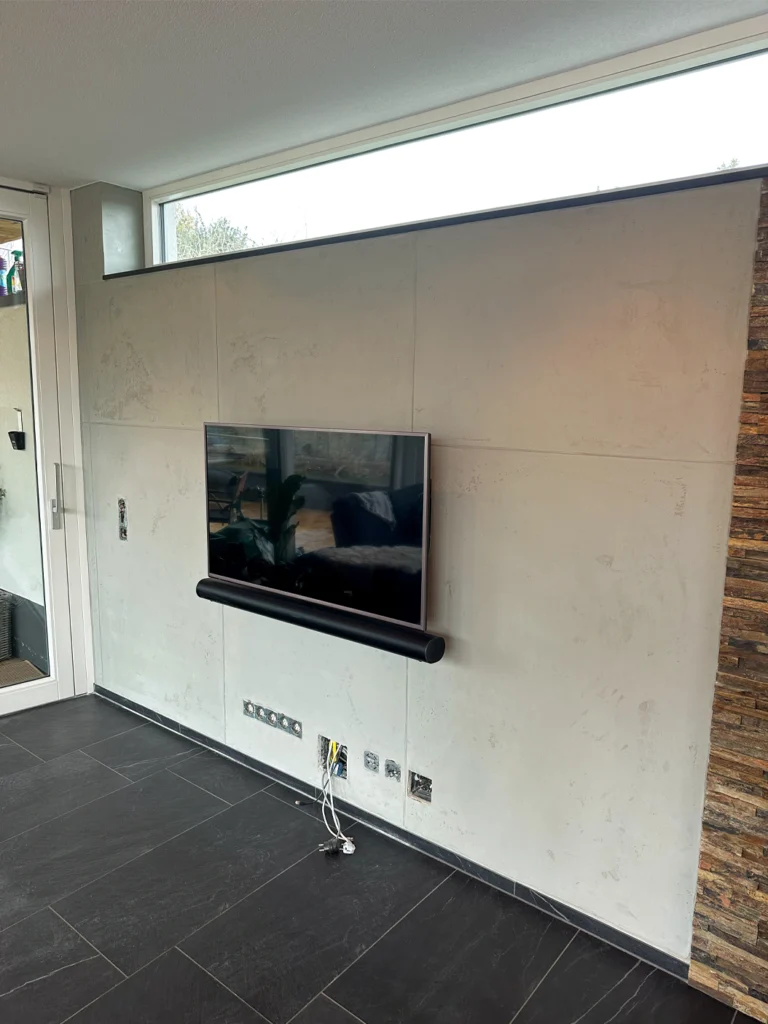 Darüber hinaus kümmern wir uns um Brandschutzverkleidungen und -systeme, optimieren die Raumakustik mit spezialisierten Deckenlösungen und gestalten robuste, wasserresistente Putz- und Bodensysteme für Badezimmer und Wellnessbereiche.